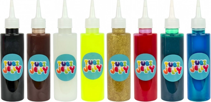 • 8 couleurs de gel (150 ml) – bleu, blanc, rouge, néon, brun, turquoise, noir et à paillettes