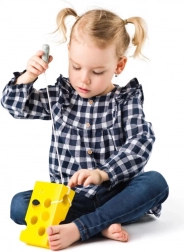 L’enfant guide la souris à travers le « fromage », essaie différents chemins et développe patience et raisonnement logique.