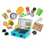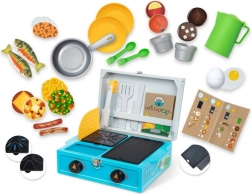 Le set de camping avec cuisine pour enfants apporte des possibilités illimitées d’imagination et de divertissement. Ce kit comprend divers éléments, y compris des jouets de vaisselle et d’aliments, rangés dans une boîte portable, idéal pour jouer dehors lors d’un pique-nique.