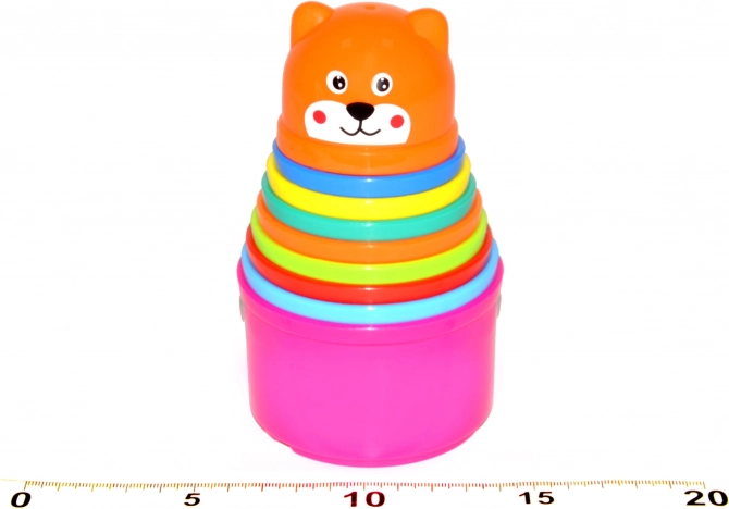 Les gobelets s’emboîtent ou s’empilent facilement pour créer une pyramide stable. Le jeu avec la tour amuse les enfants à la maison comme en déplacement, tout en soutenant leur développement psychomoteur.