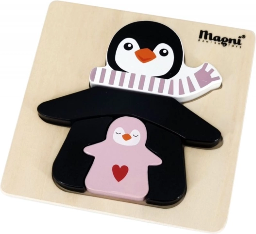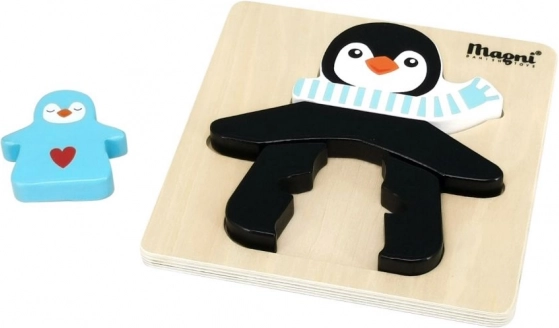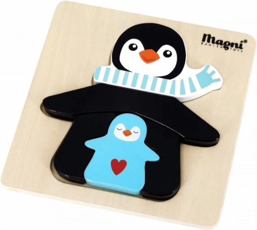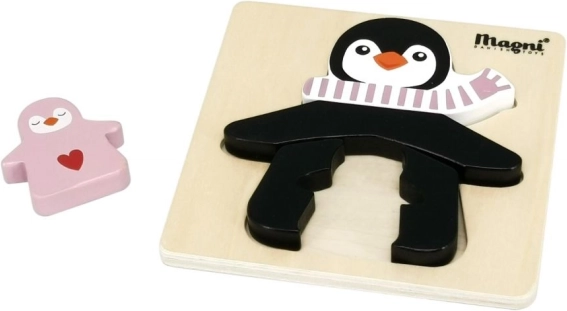 Découvrez un premier puzzle pour les plus jeunes – un puzzle en bois avec un pingouin et ses petits. Grâce à son matériau en bois robuste, à ses bords lisses et à son design simple, il est facile à saisir et à assembler pour les enfants. Le jeu développe naturellement la patience, la concentration et la perception des formes.