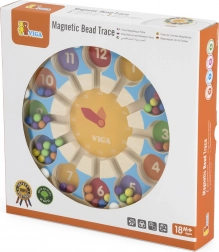 Ce jouet éducatif est conçu pour offrir aux enfants des heures de divertissement tout en apprenant à reconnaître les chiffres et les couleurs. Le jouet comprend un cadran en bois avec des perles colorées que les enfants peuvent déplacer à l'aide d'une baguette magnétique rouge. Cette forme de jeu est non seulement amusante, mais elle développe aussi la pensée logique et la concentration.