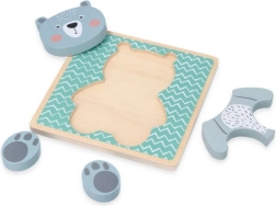 Vous cherchez comment soutenir le développement des compétences motrices de votre enfant par le jeu ? Ce puzzle en bois ours offre non seulement du plaisir mais aussi un apprentissage pour les plus petits. Composé de quatre pièces qui s'insèrent dans une base, ce puzzle aide les enfants à apprendre sur les différentes formes et parties du corps.