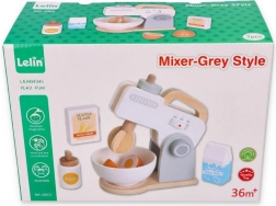 Ce mixeur en bois est un excellent jouet pour les jeunes chefs qui aiment imiter les actions des adultes. Son design mêlant gris et bois naturel s’intègre parfaitement dans toute cuisine pour enfants.
