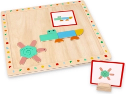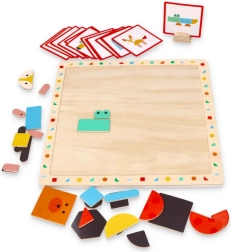 Pour plus de confort, l’ensemble comprend également un bloc en bois avec une découpe, dans laquelle il est possible d’insérer une carte avec un motif afin d’observer et d’organiser le modèle plus facilement.