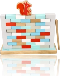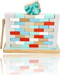 NE RENVERSE PAS LE MUR est un jeu d’adresse captivant qui développe la patience, la précision et l’esprit d’équipe. Le but est de retirer progressivement des petites briques du mur à l’aide d’une baguette en bois sans que la structure ne s’effondre et en laissant les animaux au sommet debout. Idéal pour les préscolaires et les moments de partage en famille.