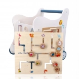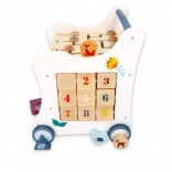 Découvrez la magie des premiers pas avec ce chariot de marche en bois multifonction – un véritable centre d’activités pour s’amuser et apprendre. Les enfants apprécieront la boîte à formes, le labyrinthe supérieur avec éléments coulissants ainsi que les blocs rotatifs avec chiffres 1–9 et animaux. Sa structure stable, ses roues antidérapantes et ses peintures non toxiques garantissent un jeu en toute sécurité. Certification CE.