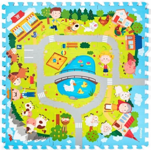Le puzzle de sol en mousse Village est un excellent choix pour les chambres d’enfants et les coins jeux. Les pièces imprimées créent une surface de jeu agréable au toucher, facile à entretenir et qui protège en même temps les enfants du froid du sol. La surface rainurée sans pièces amovibles augmente la sécurité pendant le jeu.