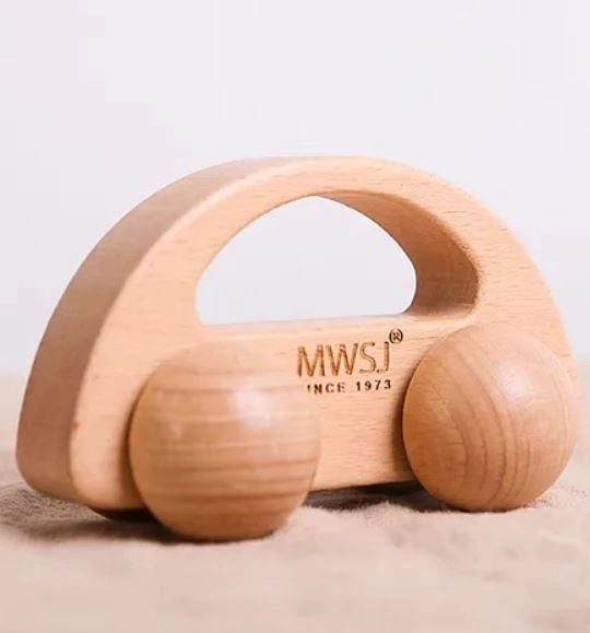 La voiture en bois est soigneusement lissée avec des formes arrondies, idéales pour les petites mains d'enfants. Elle est recommandée pour les enfants de plus de 6 mois.