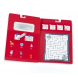 Bloc compact 19 × 28 cm avec compartiment intégré pour le stylo. Amusement en voiture, au restaurant ou en vacances.