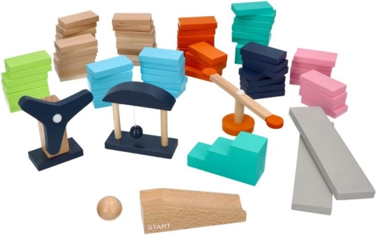 Construisez votre propre domino rally, des lignes simples aux parcours à plusieurs niveaux. Le set complet en bois certifié propose des couleurs modernes, une finition de qualité et de nombreux accessoires pour un jeu dynamique. Grâce aux éléments interactifs, des effets surprenants se produisent et les enfants entraînent leur patience, leur concentration et la compréhension du principe cause–effet.