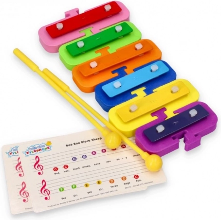 Sept lames vivement colorées aident les enfants à acquérir rapidement le rythme, les couleurs et de simples mélodies.
