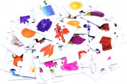 Nous écoutons et nous assemblons – le meneur de jeu raconte une histoire en utilisant les objets représentés sur les puzzles. L’enfant doit trouver le plus vite possible la carte correspondante et gagner des points.