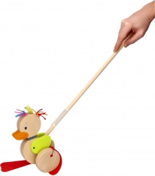 Découvrez le charme d’un jouet en bois qui favorise le développement moteur et la motricité de votre enfant. Le canard aux éléments colorés et aux roues multicolores se déplace sur le sol et encourage les pas et la coordination. Fabriqué en bois naturel, le jouet offre un divertissement sûr et durable pour les enfants à partir de 18 mois.