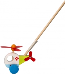 L’hélicoptère en bois avec tige de Goki apporte beaucoup de plaisir aux enfants qui apprennent à marcher. Il est fabriqué en bois massif, garantissant une longue durée de vie et une sécurité lors du jeu. Grâce à son design coloré et à ses éléments mobiles, tels que le rotor et les roulettes, il captive chaque petit explorateur.