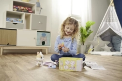 Emportez facilement le lapin partout grâce à l’emballage en papier avec poignée, qui sert de petite maison de transport. À l’intérieur, retrouvez aussi des sachets en papier surprises – des accessoires thématiques pour encore plus de scénarios de jeu. La patte magique révèle le sexe de l’animal et aide les enfants à créer un lien personnel avec lui.