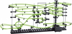SPACERAIL Glow est un kit créatif pour les passionnés de technique, de logique et de construction. À partir de pièces en plastique et en métal et de fibres phosphorescentes, vous assemblez une piste à billes élaborée sur une base stable. Lors du montage, vous façonnez arcs, boucles et descentes et ajustez le passage idéal des billes.