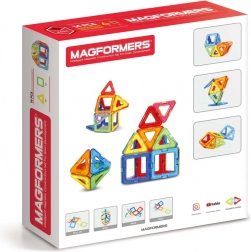 MAGFORMERS BASIC 14 sont des blocs avec de puissants aimants en néodyme intégrés qui s’attirent toujours entre eux. Il suffit d’approcher les faces de deux blocs pour qu’ils se connectent immédiatement. À partir de pièces façonnées selon des formes géométriques, vous pouvez construire de superbes structures tridimensionnelles. Pendant le jeu, vous pouvez utiliser le guide fourni, d’autres exemples sur le site magformersworld.com ou votre propre imagination. Le set comprend : 8 triangles ; 6 carrés.