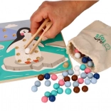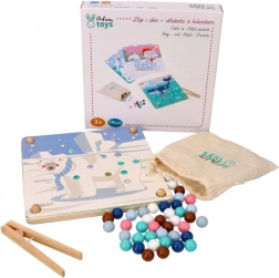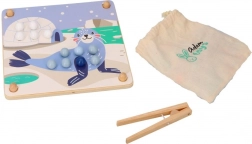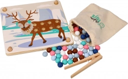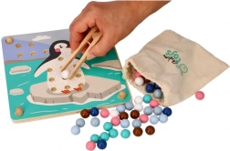 Ce jeu éducatif ludique associe la curiosité naturelle des enfants à l’entraînement des compétences : à l’aide de la pince en bois, les enfants déplacent les billes et les placent dans les trous selon les couleurs et les modèles sur le thème des animaux de l’Arctique (manchot, phoque, renne, ours polaire). Le jeu favorise la concentration, une prise précise et la stabilité de la main – idéal pour les enfants d’âge préscolaire.