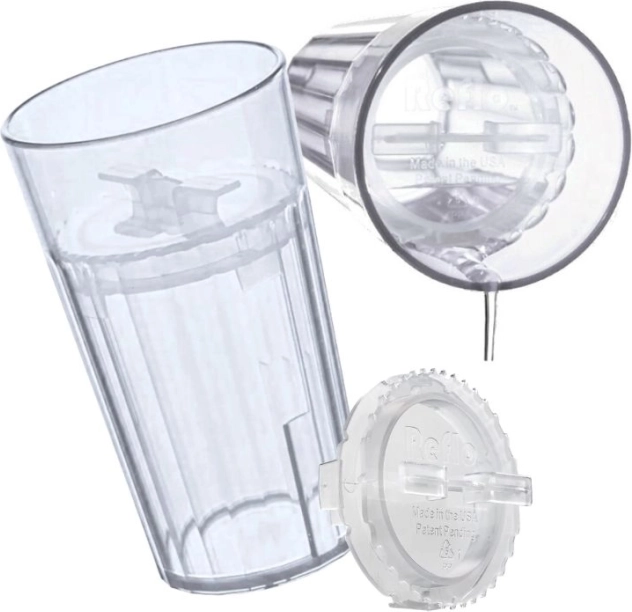 La forme rainurée du gobelet assure une prise sûre et un grand confort de boisson.