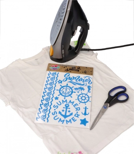 Placez le motif, couvrez-le de papier cuisson et transférez-le sur le textile en quelques passages de fer. Idéal pour les créations à la maison sans préparation compliquée.