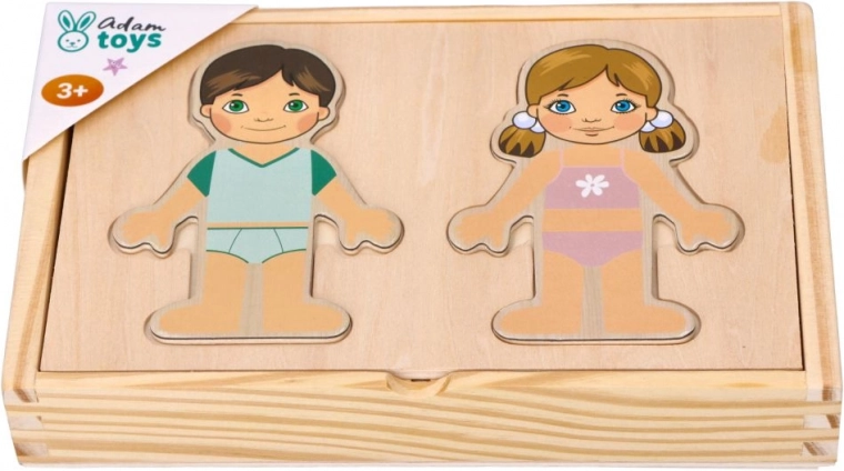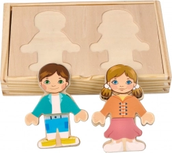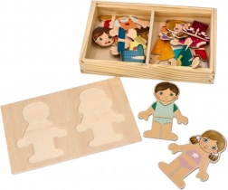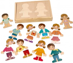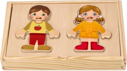 Ce puzzle magnétique en bois avec figurines de garçon et de fille offre des dizaines de possibilités pour les habiller et combiner les différentes pièces. En jouant, les enfants entraînent la coordination œil–main, la pensée logique et la perception des formes et des couleurs.