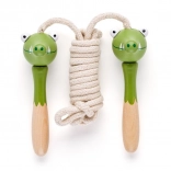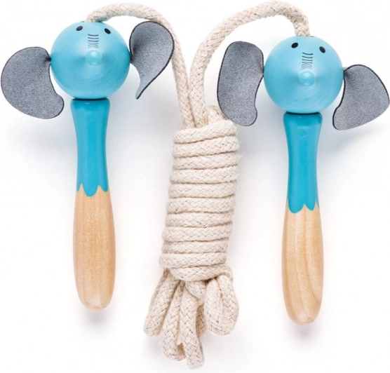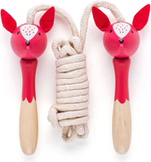 Les cordes sont dotées de poignées en bois en forme d’animaux, ajoutant une touche ludique aux exercices quotidiens.