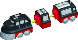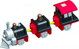 La boîte comprend 9 pièces permettant d’assembler 3 trains préconfigurés. En changeant les modules, créez des dizaines de variantes originales sans limite à l’imagination.