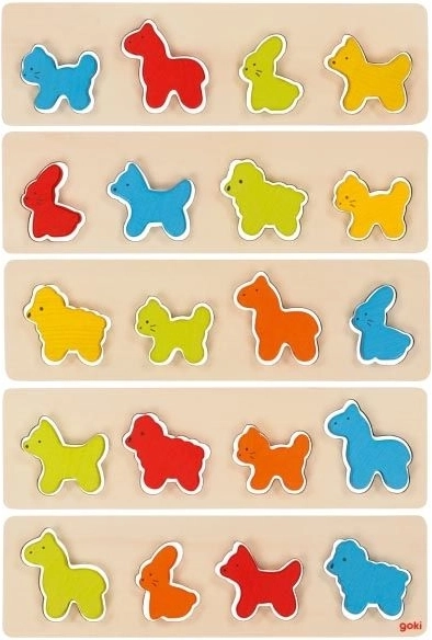 - Exercice de la motricité fine via l'insertion des animaux en bois dans les découpes.