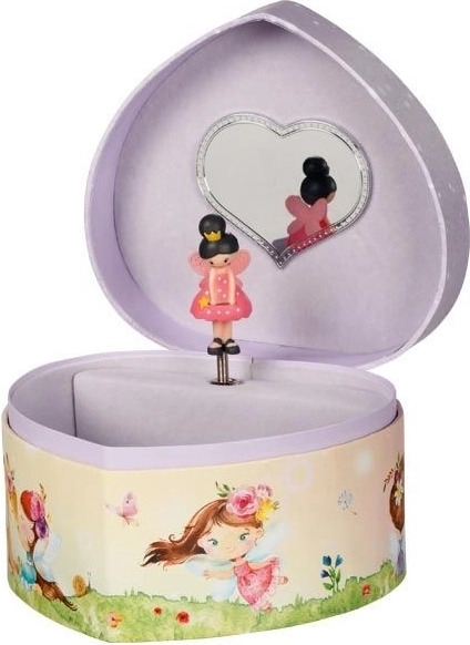 Élégante boîte à bijoux musicale au motif de fée qui ravira chaque petite coquette. À l’ouverture, la mélodie du Lac des cygnes retentit et la fée se met à danser devant un miroir en forme de cœur. Idéale pour le rangement sécurisé des bijoux d’enfants et des petits trésors, et une belle décoration pour la chambre d’enfant.