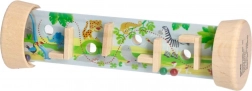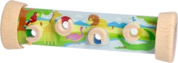 Grâce à ses dimensions compactes (Ø 4,5 cm × 15,5 cm), il est parfait pour les voyages, les salles d’attente et la maison. Des extrémités en bois solides et des finitions de qualité assurent durabilité et sécurité d’utilisation. Le design sur le thème des animaux sauvages captive instantanément les enfants et les motive à recommencer.