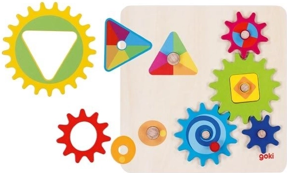 Ce jeu de logique en bois de la marque GOKI stimule l’imagination et la patience des enfants. Ils placent des engrenages colorés sur la base et testent si, après l’installation de la roue bleue, tous les pignons tournent correctement – et dans quel sens. Un apprentissage créatif et ludique qui conduit à la compréhension des bases de la mécanique ainsi que des notions de cause et effet.