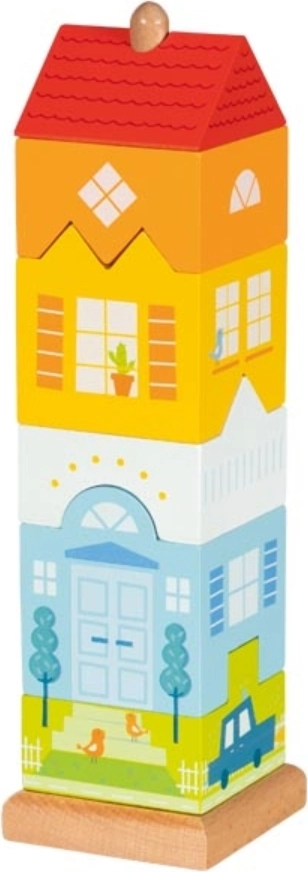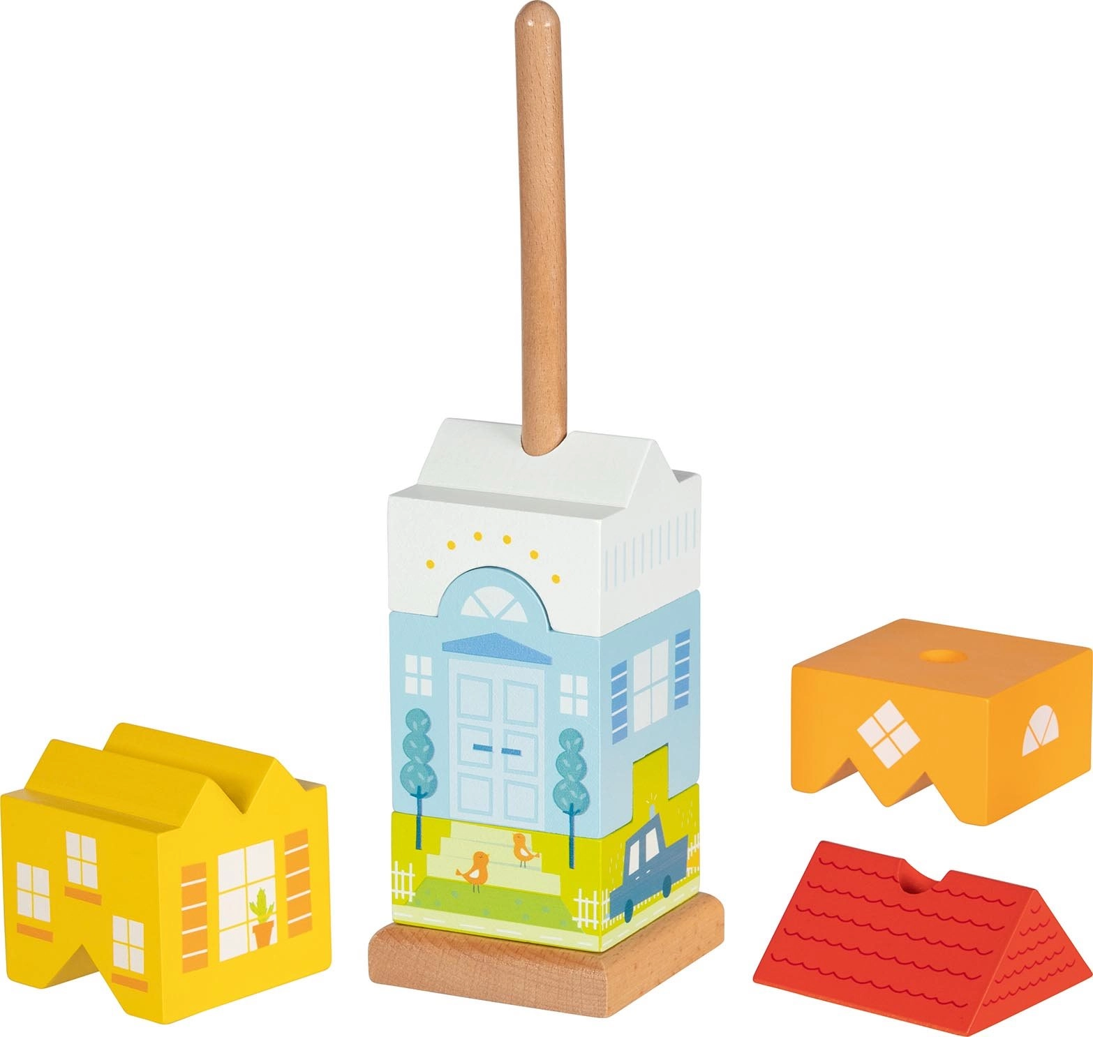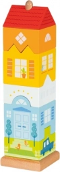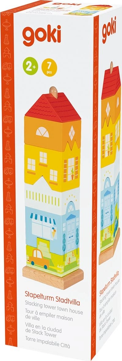 Voici une maison urbaine typique. L'ensemble est composé de blocs colorés, chacun différent, et chacun s’assemblant au bloc précédent d’une manière légèrement différente. Cette maison urbaine se compose de 6 blocs et d’une base. Le piquet est fixé à une ficelle. Chaque bloc supplémentaire correspond à un étage différent et à un bloc différent. Dimensions : 7 x 7 x 26 cm Âge : 2+ Référence : 58358 Déclaration de conformité CE