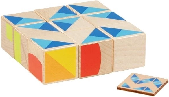 Le jeu de puzzle en bois Kubus II de la marque GOKI combine créativité et logique. Les enfants peuvent développer leurs compétences cognitives à l'aide de formes géométriques colorées sur des cubes.