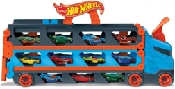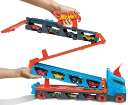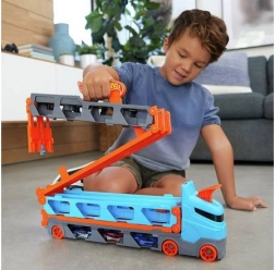 Transforme le camion en un clin d’œil en une véritable piste de course. Le transporteur abrite jusqu’à 20 petites voitures derrière des fenêtres transparentes pour garder un œil sur ta collection. En tirant sur la poignée, la remorque se déploie en une piste à deux voies de 1,8 m, tandis que la cabine devient une station de double lancement pour des départs équitables.