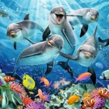 Scène sous-marine réaliste avec dauphins et poissons colorés, offrant des couleurs éclatantes et des détails soignés qui ressortent aussi bien au mur que sur une table.