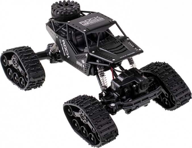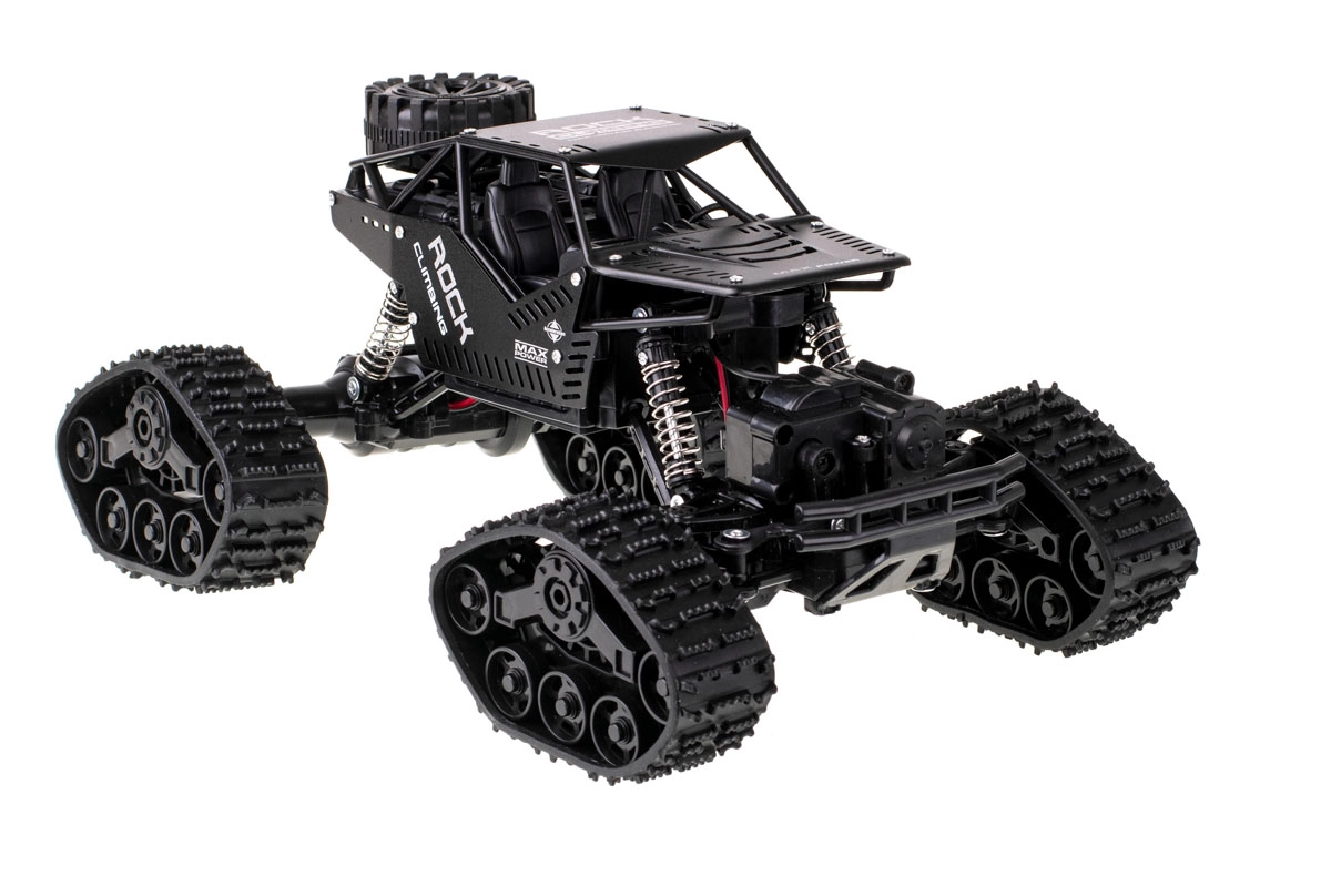 Voiture RC tout-terrain amusante et robuste avec transmission 4x4, roues interchangeables pour chenilles en caoutchouc et radiocommande 2,4 GHz. Grâce à la suspension à ressorts et aux grands pneus en caoutchouc, elle s’adapte à différentes surfaces. Commande facile, idéale pour les débutants et les enfants dès 6 ans.