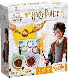 Entrez sur le terrain de Quidditch et devenez le champion de votre maison ! Dans ce jeu dynamique Quidditch Tryouts de Shuffle, vous posez vos cartes sur les cartes-anneaux, réagissez vite aux couleurs et essayez de déjouer vos adversaires. Une fois toutes les cartes-anneaux jouées, gagne le joueur avec le meilleur score – peut-être un nouveau membre de Gryffondor !