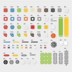 Jusqu’à 301 pièces en 27 formes – des blocs de base aux connecteurs en passant par des éléments spéciaux. Construisez des maisons, des voitures, des machines et des structures originales, et stimulez l’imagination chaque jour.