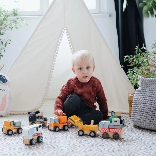 Le jouet Ambulance de la série Jouets en bois renforce le réflexe de préhension et apprend la précision. Il stimule l’imagination et développe la coordination œil-main. Il possède des parties mobiles. Tous les matériaux utilisés pour fabriquer le jouet sont certifiés et ont été peints avec des peintures non toxiques. Le jouet convient aux enfants à partir de 12 mois.