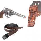 Plongez dans l’atmosphère du Far West avec ce revolver en métal de qualité signé GONHER. Sa finition réaliste, son poids agréable et son mécanisme fiable à 8 cartouches en font un excellent accessoire pour les jeux d’Indiens et de cow-boys ainsi qu’une pièce stylée pour les collections.
