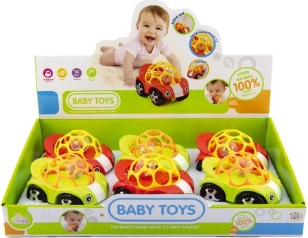 La petite voiture en plastique est conçue pour attirer l'attention des enfants grâce à ses couleurs vives et ses sons cliquetants produits par la bille à l'intérieur. Grâce à son toit souple et perforé, elle est facile à tenir même pour les tout-petits.<8p>