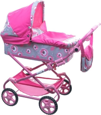 Offrez à vos enfants le plaisir de jouer avec cette poussette pour poupées stylée. Grâce à un cadre métallique léger et des roues plus grandes, elle assure une manipulation facile et une conduite fluide. La poussette est équipée d'une nacelle couverte avec tablier, d'un panier et d'un sac à langer pratique.