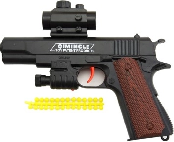 Pistolet-mitrailleur en mousse avec chargeur et douilles