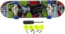 Le skateboard présente un design unique avec des éléments graphiques impressionnants, le rendant un accessoire attrayant pour les skateboards à doigts.