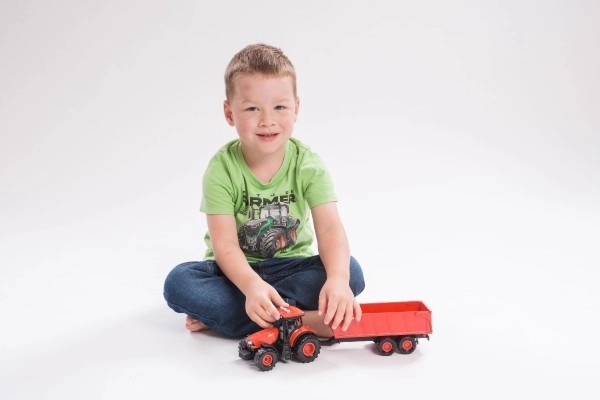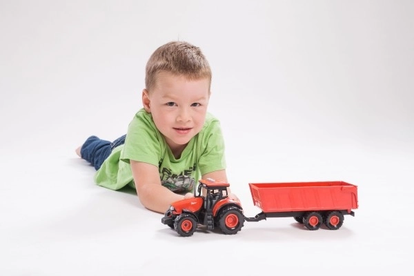 Découvrez l'univers des machines agricoles avec le modèle de tracteur Zetor, conçu pour offrir un maximum de plaisir grâce à ses fonctionnalités réalistes. Ce tracteur non seulement ressemble à un vrai, mais il émet aussi des sons réels et possède des lumières fonctionnelles. La remorque peut être facilement détachée, permettant un jeu varié et le développement de l'imagination.