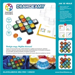Le jeu Gemmes appartient à la gamme appréciée de jeux de logique SmartGames conçus principalement pour un joueur. Chaque défi contient un ensemble unique d’indices sur les positions des gemmes. Votre tâche est de placer correctement toutes les pièces sur le plateau et de révéler l’emplacement du diamant rouge. Chaque pièce est unique et chaque défi n’a qu’une seule solution.