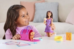 L'ensemble amusant Barbie Soin des chiens encourage à prendre soin et à se préoccuper des animaux. Il comprend une poupée Barbie, deux chiens et des accessoires avec fonction de changement de couleur.