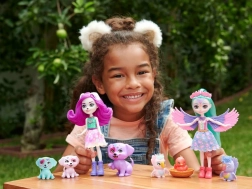 Découvrez la poupée Filia Finch de la gamme Enchantimals, accompagnée de sa mignonne famille de perroquets. Filia a de longs cheveux turquoise et une tenue colorée comprenant un top original et une jupe à motifs d’oiseaux. Elle porte des petites chaussures roses qui s’accordent parfaitement avec ses élégantes ailes roses.