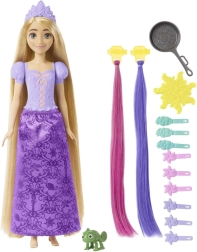 La poupée Raiponce inspirée du film apporte des heures de jeu créatif. Ses très longs cheveux invitent au coiffage, au tressage et à la décoration, tandis que les mèches additionnelles changent de couleur dans l’eau chaude – du violet au rose et du rose au bleu. Les enfants peuvent facilement reproduire les coiffures du film ou inventer leurs propres créations.